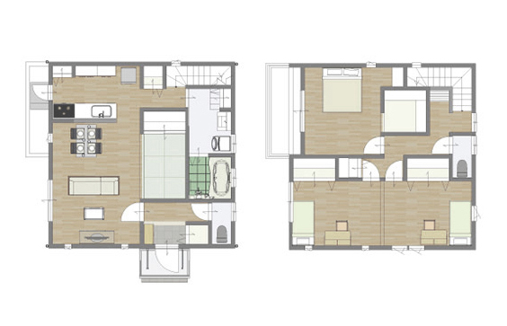 この間取りは、家族の繋がりとプライバシーを両立した2階建てのプランです。